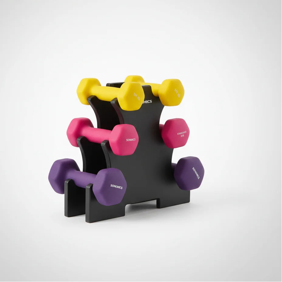 Le support compact maintient vos haltères organisés et discrets. Intégrez le fitness sans encombrer votre espace, transformez votre intérieur.
